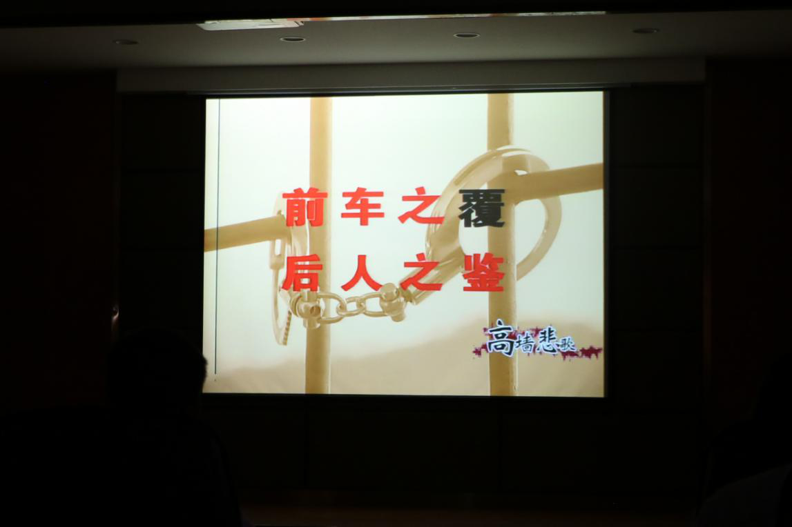 ? ? ? ? ?隨后,大家觀看了《高墻悲歌》警示教育片?!俺P逓檎拢K钾澞钪?,常懷律己之心”,一例例鮮活的案例,一個個深刻的教訓(xùn),讓現(xiàn)場人員無不觸及靈魂,震撼心靈。